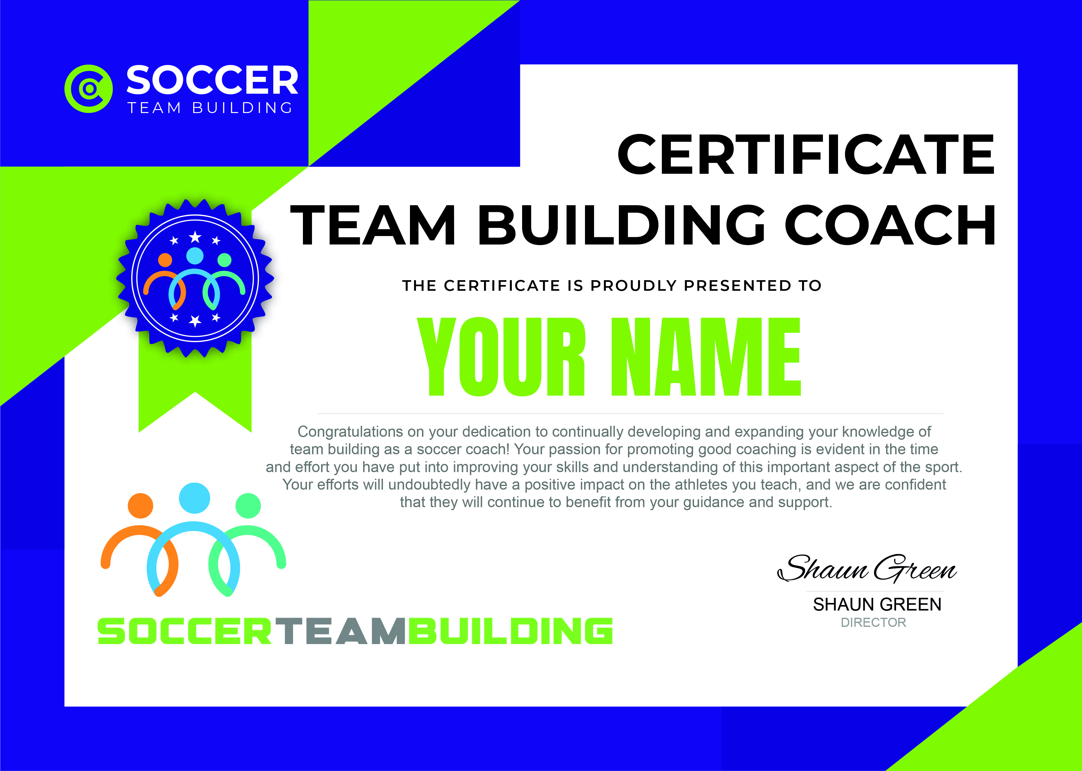 The Team Building Certificate is the first ever online certification for specifically for Team Building. The course is designed to improve the coaches understanding in all the important areas of Team Building. The exam is directed towards coaches who are training youth players at all levels of the game. It is designed to improve the coaches understanding in the areas of Team Building Methodology and teaching the Life Skill's necessary to develop players. The online course is FREE with membership to SoccerTeamBuilding.com.